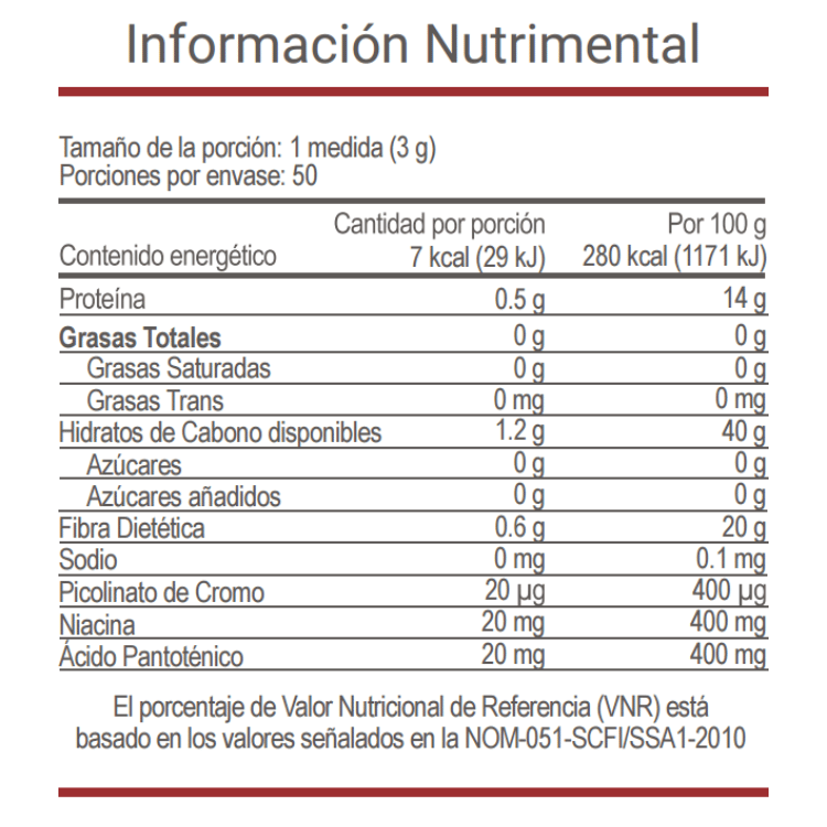 Café Negro Tostado Instantáneo (Coffea arabica), L-Carnitina Tartrato, Extracto de Guaraná (Paullinia cupana), Extracto de Garcinia Cambogia (Garcinia cambogia), Nicotinamida, Vitamina B5, L-Tirosina, Extracto de Sauce Blanco (Salix alba), Raiz de Jengibre (Zingiber officinale), Extracto de Té Verde (Camellia sinensis), Extracto de Ginseng (Panax), Extracto de Yerba Mate (Ilex paraguariensis), Alga Marina (Fucus), Pimienta Cayena (Capsicum annuum), Pimienta Negra (Piper nigrum) y Picolinato de Cromo.