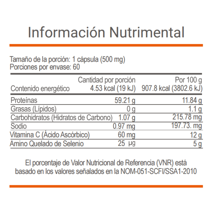 Polvo de raíz de cúrcuma (Cúrcuma longa), Metilsulfonilmetano (MSM), Sulfato de condroitina, Vitamina C (Ácido ascórbico), Amino quelado de selenio y Silica