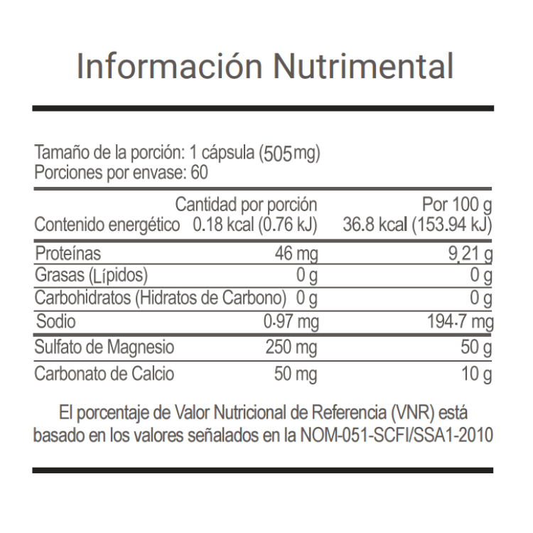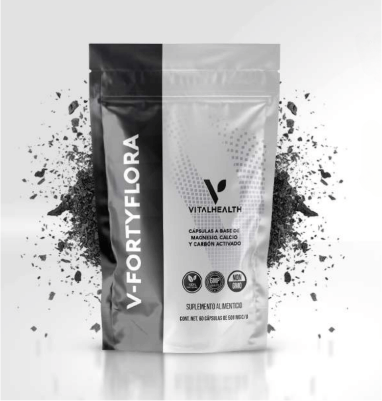 Carbón vegetal (Carbo vegetalis), Sulfato de magnesio, L-lisina, Carbonato de calcio y Dioxido de